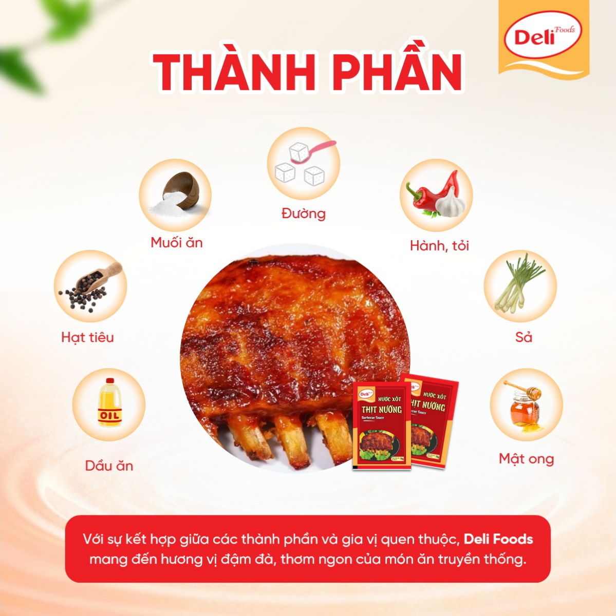 Thành phần: Đường, muối ăn, hành, tỏi, dầu ăn, mật ong, sả, tiêu, chất ổn định, chất điều vị, phẩm màu tổng hợp, ngũ vị hương, chất bảo quản