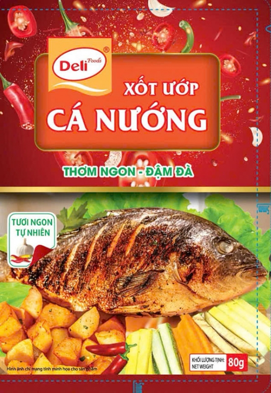 Xốt ướp Cá Nướng dùng làm gia vị để ướp cá khoảng 1 giờ trước khi nướng hoặc rán. Lượng dùng 1 gói ướp cho khoảng 1kg cá.
