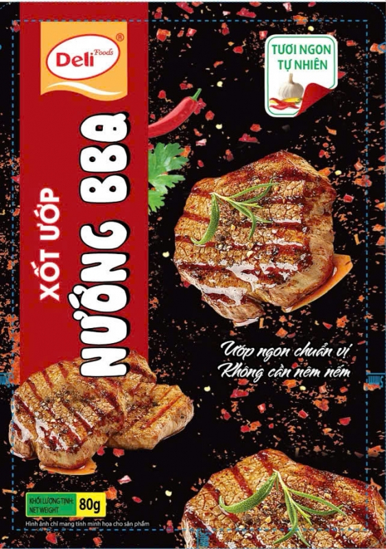 Xốt ướp Nướng BBQ dùng để chế biến món thịt nướng hoặc rán mà không cần phải thêm gia vị nào khác.