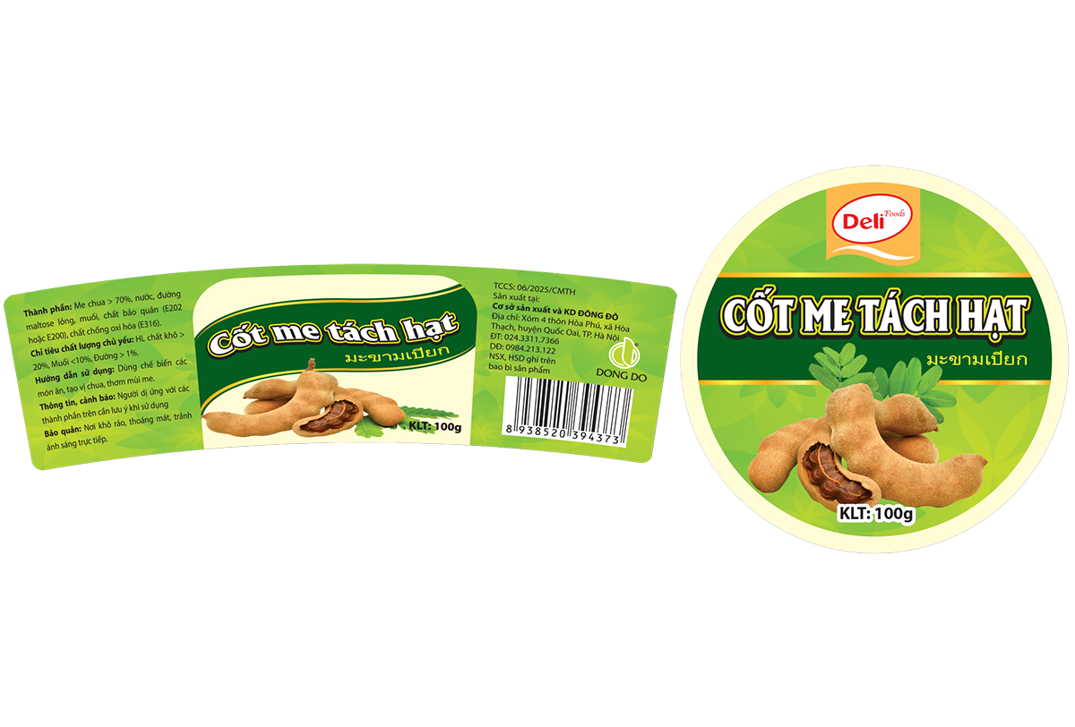 Me chua > 70%, nước, đường maltose lỏng, muối, chất bảo quản (E202 hoặc E200), chất chống oxi hóa (E316).