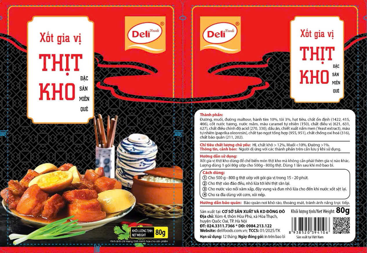 Xốt gia vị thịt kho dùng để chế biến món thịt kho mà không cần phải thêm gia vị nào khác. Lượng dùng 1 gói 80g ướp cho 500g - 800g thịt. Dùng 1 lần sau khi mở bao bì.